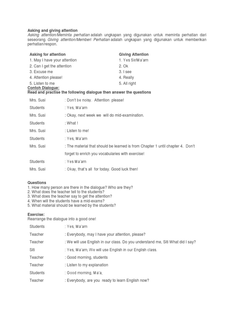 Contoh Dialog Asking And Giving Attention Halaman All Kompas Com from asset.kompas.com Maybe you would like to learn more about one of these? We did not find results for: Asking for and giving attention. Check spelling or type a new query.