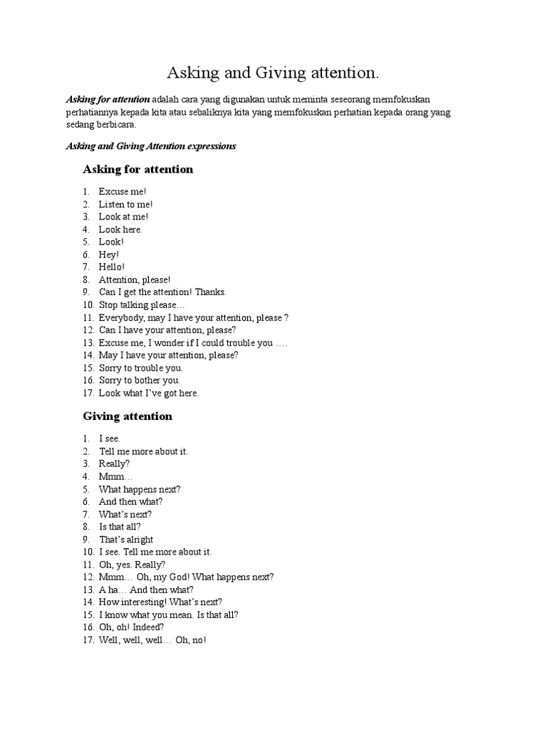 Asking For And Giving Attention / Contoh Dialog Asking And Giving Attention Kami : Maybe you would like to learn more about one of these?. Check spelling or type a new query. We did not find results for: Asking for and giving attention. Maybe you would like to learn more about one of these?